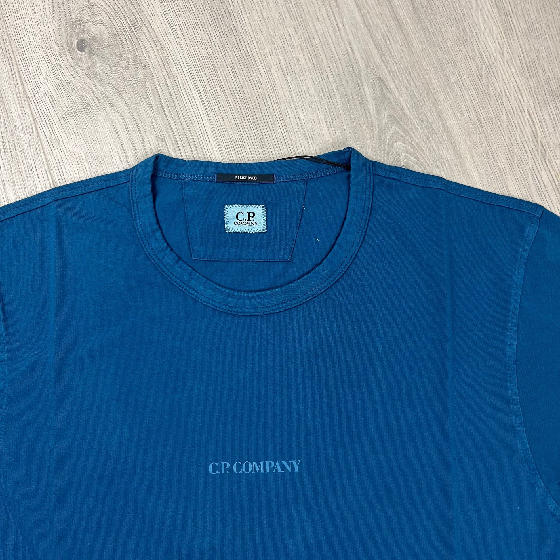 Ink Blue CP Company 24/1 jersey dyed relaxed fit T-shirt with small tonal logo print on the chest