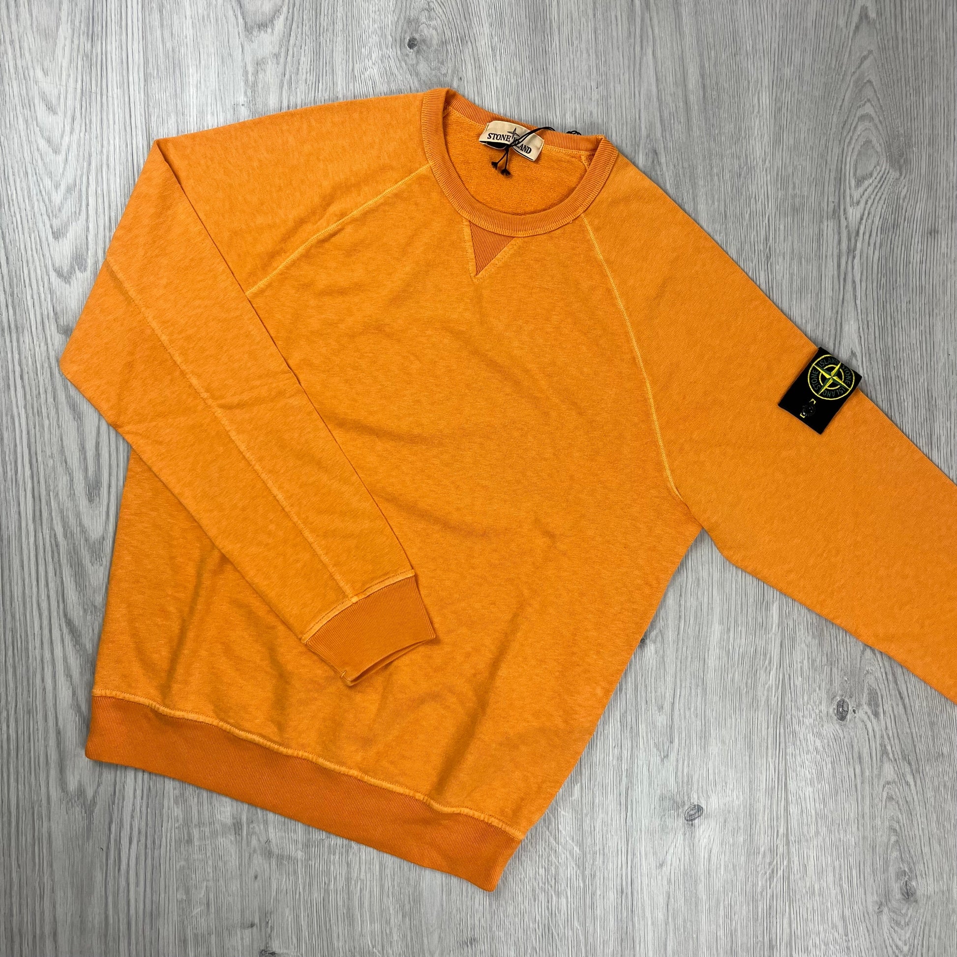 Orange Stone Island garment dyed 'OLD' treatment malfilé fleece sweatshirt with classic patch badge on the left sleeve